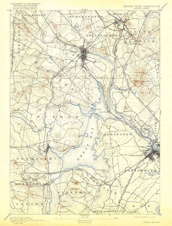 1893 Topo Map of Dover Maine Quadrangle Great Bay New Hampshire Etsy