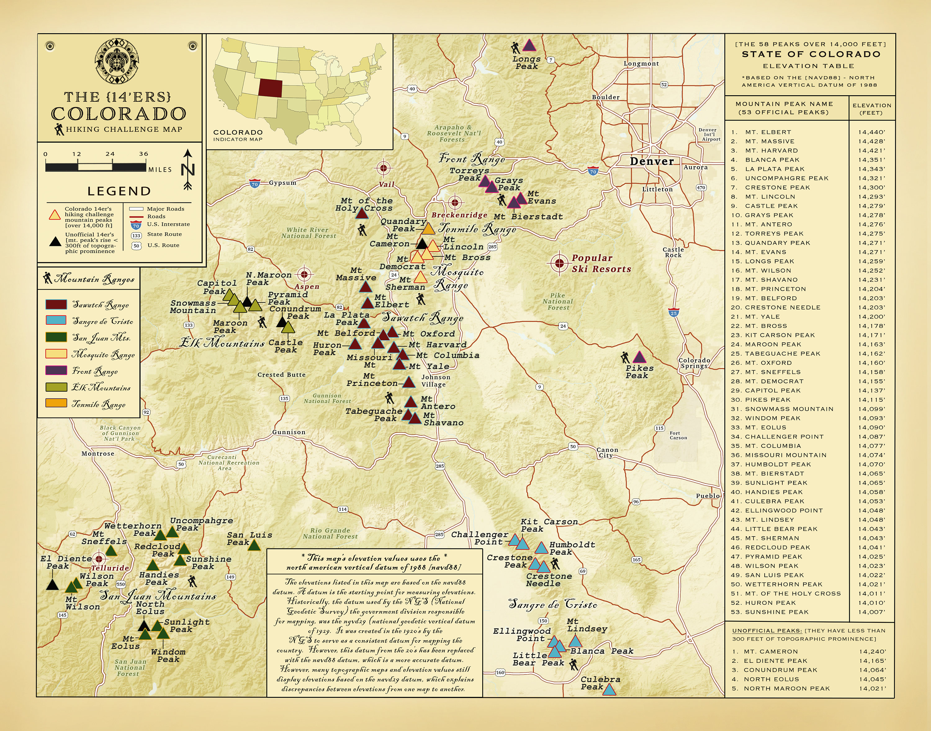 58 Colorado 14ers Map 11×14 Print Best Maps Ever
