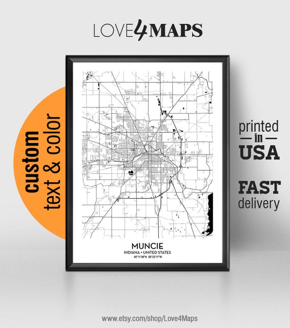 Muncie Indiana Map, Muncie City Print, Ball State University